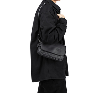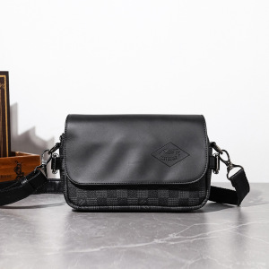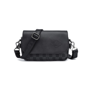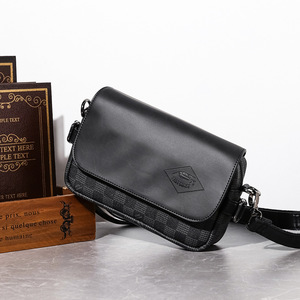 新款日系潮牌翻盖小挎包2025男士格纹皮质单肩包手机休闲小挎包批