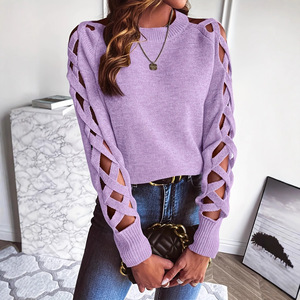 秋冬新款女装镂空针织衫毛衣上衣薄款春秋内搭打底衫跨境欧美