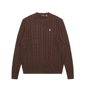跨境拉夫劳伦Ralph Lauren圆领纯色小马刺绣logo麻花针织毛衣