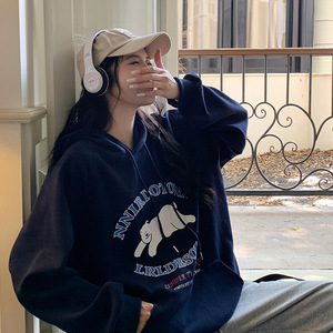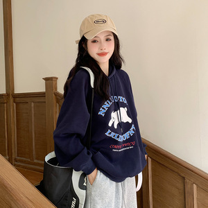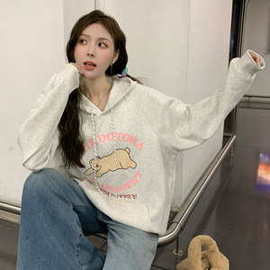肥柒柒大码女装卫衣2025秋冬新款可爱印花宽松型连帽卫衣加绒加厚