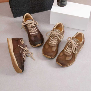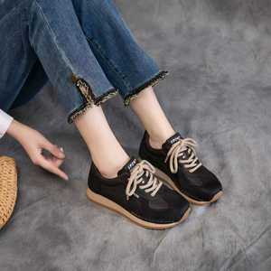 2025春新款真皮松糕厚底鞋女圆头妈妈单鞋头层牛皮复古运动休闲鞋