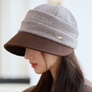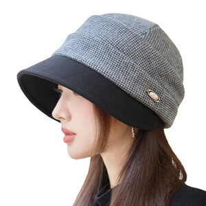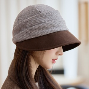 秋冬季帽子女韩版时尚百搭千鸟格盆帽优雅折叠显脸小马术帽渔夫帽