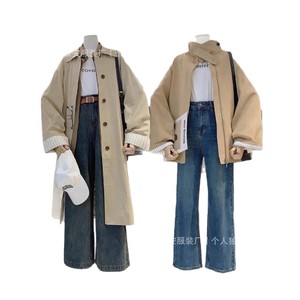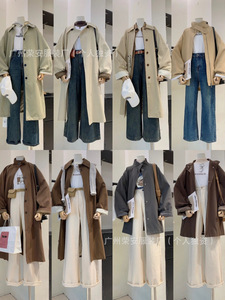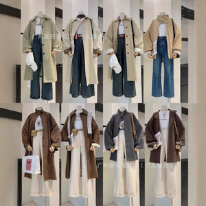秋冬季韩版长款风衣外套女款广州十三行高端品牌女装批发一手货源