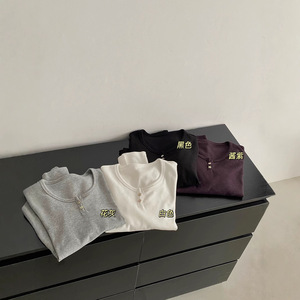 2025秋冬新款两粒扣半开领竹节优可丝长袖T恤女弹力基础款打底衫