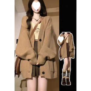 软糯慵懒秋冬2025新款宽松外套韩系穿搭上衣针织毛衣女慵懒风开衫
