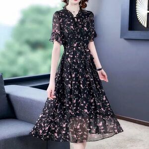 雪纺连衣裙长袖2025年春秋新款碎花连衣裙女大码胖MM减龄打底长裙