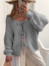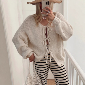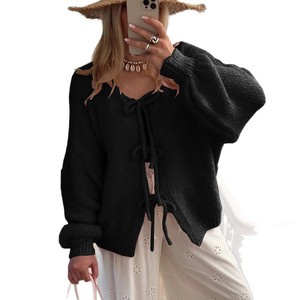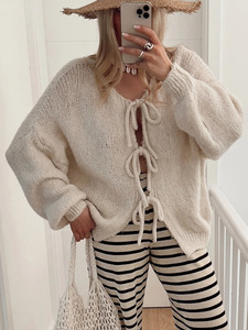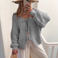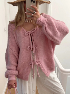 糖果色系带毛衣外套简约温柔风欧美跨境秋冬新款通勤宽松休闲毛衣