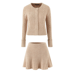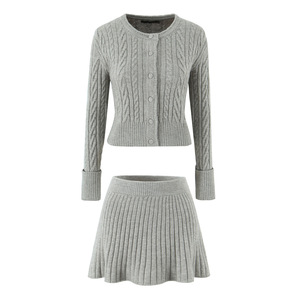 两色麻花针织套装女春季韩系高级感开衫上衣半身裙短裙两件套