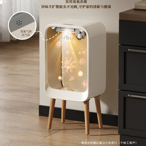 智能感应垃圾桶家用2025新款奶油中古风客厅轻奢高脚大容量