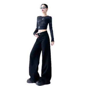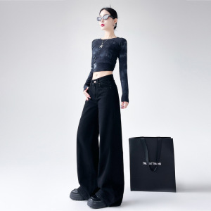 黑色阔腿牛仔裤女2025新款秋季美式宽松高腰垂感慵懒直筒裤女批发
