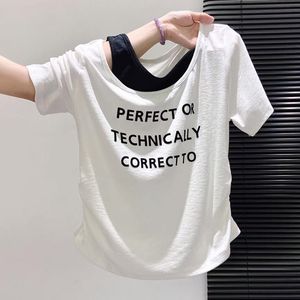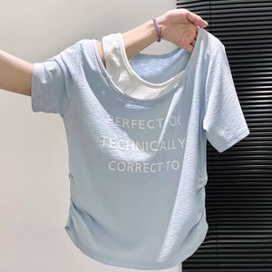 高级感假两件斜肩短袖t恤女2025夏季新款修身显瘦别致绝美小上衣