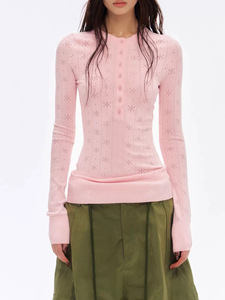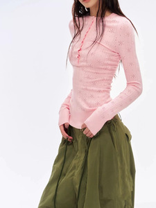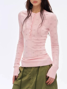 春季新款辣妹镂空毛针织衫打底亨利长袖修身女内搭上衣