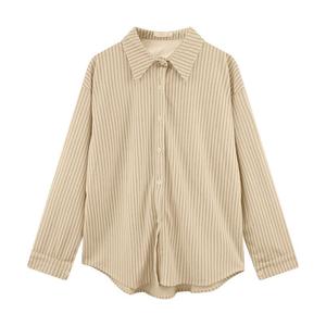 满江月韩版chic学院风复古条纹翻领长袖衬衫女薄款宽松气质上衣服