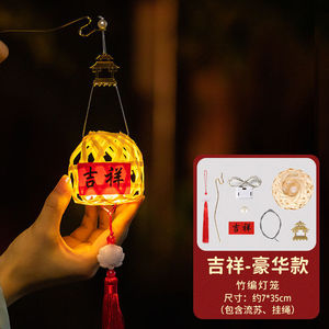 2025新款中秋节手提小灯笼国风儿童花灯竹编手工diy户外发光古风