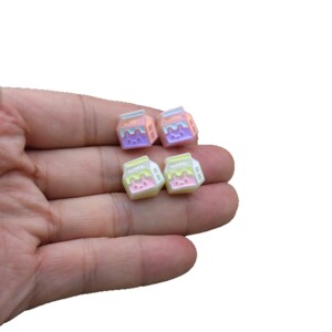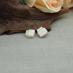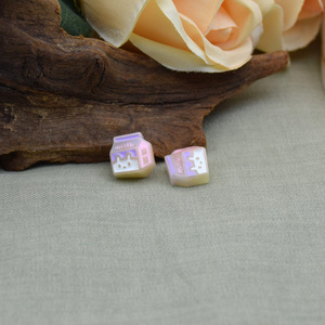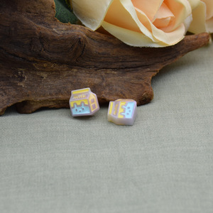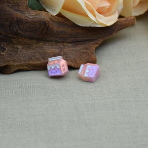 富光树脂 手绘渐变双面牛奶盒子直孔手机链配件饰品Diy配件批发