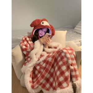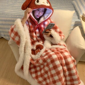 【可爱美乐蒂】卡通格纹珊瑚绒连帽睡衣秋冬2025款加厚家居服睡袍