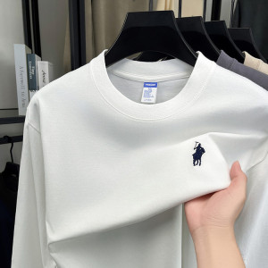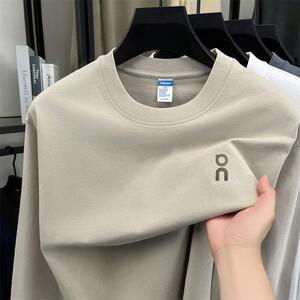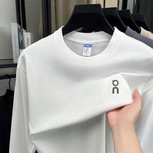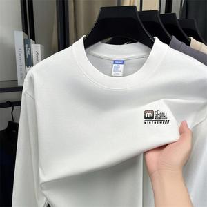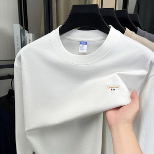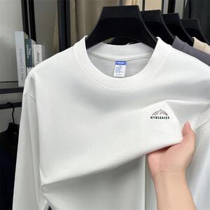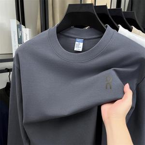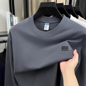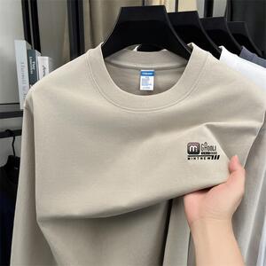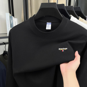 跨境重磅纯棉320克长袖t恤男2025秋季圆领时尚刺绣打底男士卫衣批