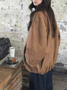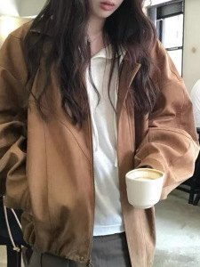 Jennie 经典复古好版型两色花苞廓型夹克皮衣