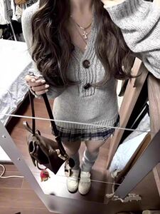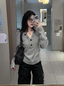 辣妹修身灰色长袖毛衣女2025秋冬季新款打底内搭针织衫开春季上衣