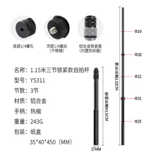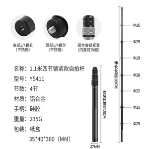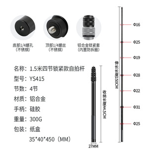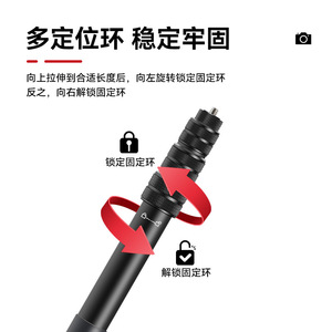 骑行记录隐形杆全景相机/大疆GoPro运动相机固定延长锁紧套自拍杆
