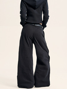 永坊美式休闲西裤男女宽松解构设计潮流黑色阔腿显瘦直筒拖地长裤
