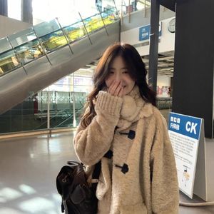 韩系翻领甜美温柔奶fufu羊羔毛外套女皮毛一体毛绒绒大衣秋冬加厚