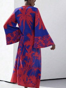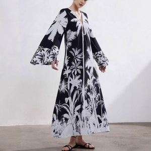 外贸跨境2025春秋爆款印花修身显瘦休闲设计感小众百搭多色连衣裙