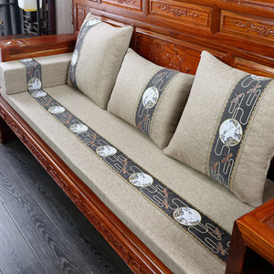 定制红木沙发坐垫实木沙发垫海绵垫轻奢简约时尚纯色亚麻沙发坐垫