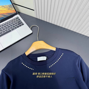 031984 早秋新款百搭字母贴布气质假两条条纹长袖T恤上衣女