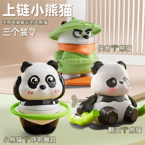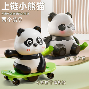 爆款萌趣仿真运动小熊猫上链熊猫跳绳滑板车儿童益智发条玩具摆件