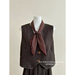 2025秋季新款韩版时尚气质百搭显瘦V领马甲+半身裙两件套女配丝巾