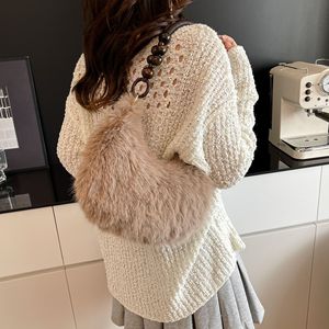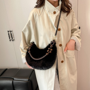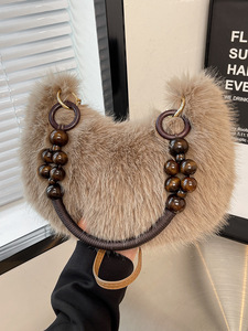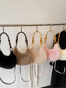 跨境新款毛毛手提包韩版女士搭配手工木珠单肩包简约斜挎包洋气