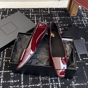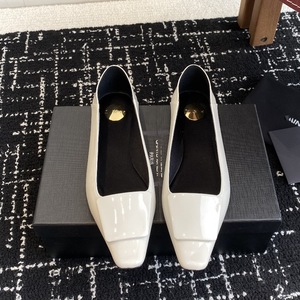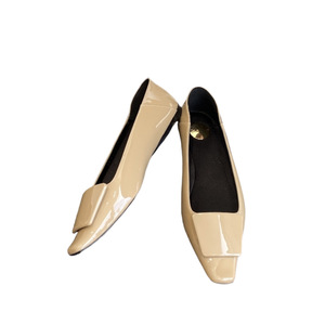 小众25ss早秋新款法式复古小方头浅口百搭通勤胎牛漆皮平底单鞋女