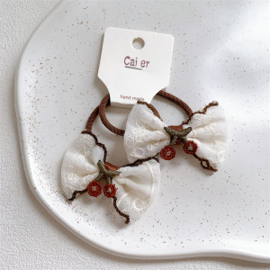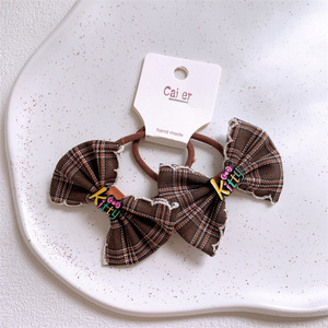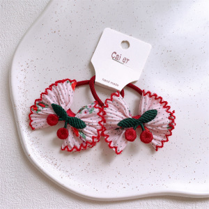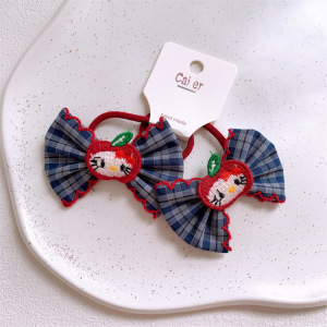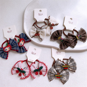 韩系儿童樱桃格子蝴蝶结发圈女孩扎头发皮筋发绳宝宝对装头绳发饰