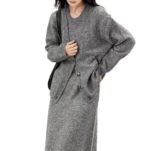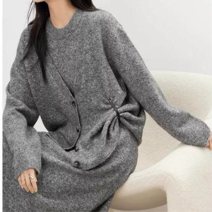 跨境套装2025秋冬新款针织开衫外套女时尚无袖中长款连衣裙两件套
