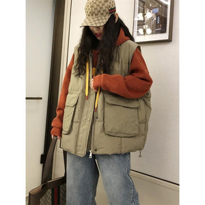 秋冬羽绒棉马甲女2025韩版新款宽松大口袋坎肩慵懒风休闲背心马夹
