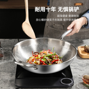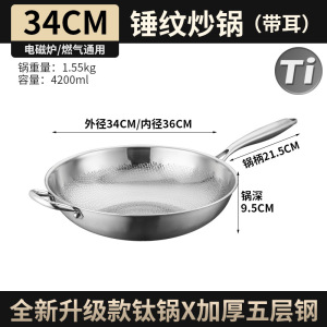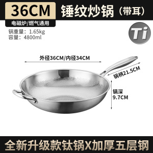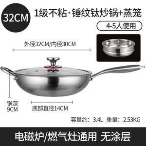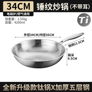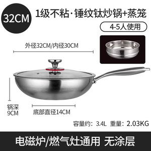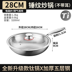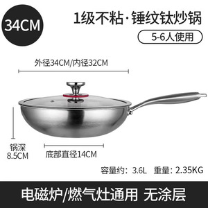 德国有钛炒锅无涂层钛锅不粘锅鱼鳞锤纹钛炒锅钛合金家用平底炒锅