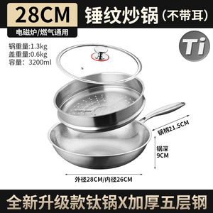 28cm平底带盖+蒸格【锤纹纯钛 无涂层】