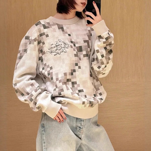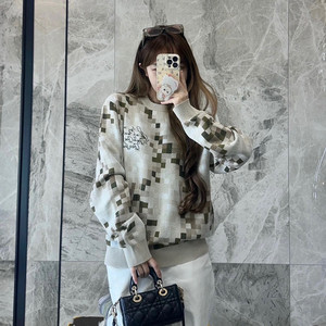 天花板毒家版本原标驴家迷彩马赛克圆领针织衫套头毛衣男女