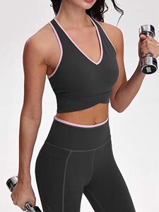 欧美跨境新款时尚露肩瑜伽服短款背心户外健身防震文胸带胸垫背心