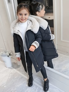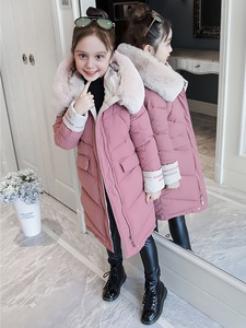 新款女童棉衣2025冬季韩版中大童儿童中长款加厚大毛领可脱卸棉服