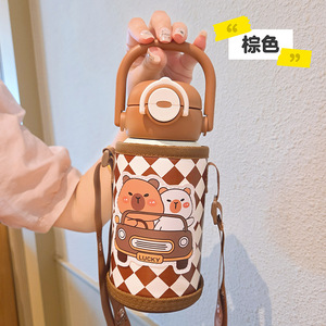卡皮巴拉儿童保温杯316不锈钢学生双饮吸管水杯便携高颜值礼品杯
