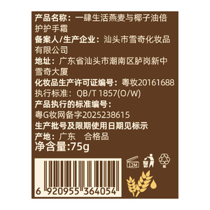 厂家批发代发燕麦与椰子油倍护护手霜补水保湿香氛护理润手霜