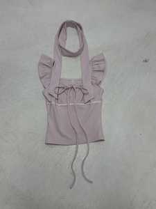 粉色温柔小飞袖短袖T恤女法式花边围脖少女感绑带收腰打底衫上衣