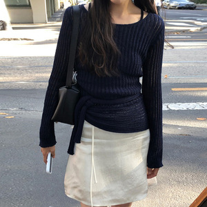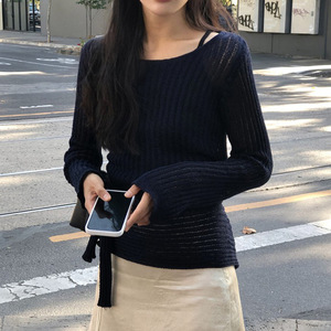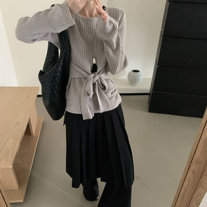 2025秋季新款韩国东大门复古气质高级感圆领系带显瘦针织衫女上衣