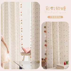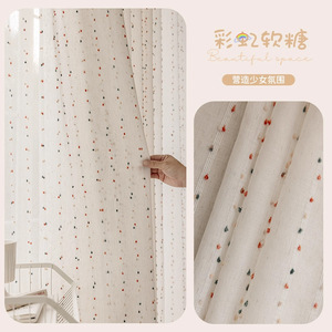 彩虹糖豆纱亚麻纱窗纱纱帘儿童少女可爱公主房卧室窗帘透光不透人