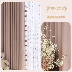 和风茉莉(浅粉色)★含三色绒球花边 全遮光双面雪尼尔