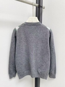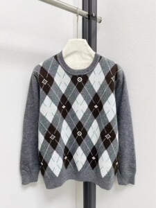 正确版复古菱格纹字母圆领针织衫女25年秋季新款宽松慵懒长袖毛衣