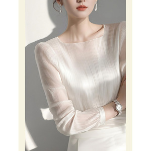 秋季高端欧货洋气小衫轻奢高级感独特别致漂亮白色醋酸缎面衬衫女