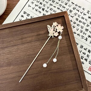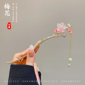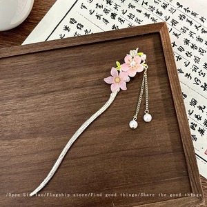 20#梅花粉色单花珍珠流苏发簪(袋装)